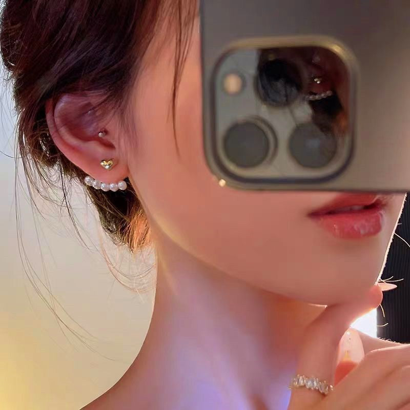 Sterling Silver Detachable Double-Wear Heart Multi-Bead Earrings