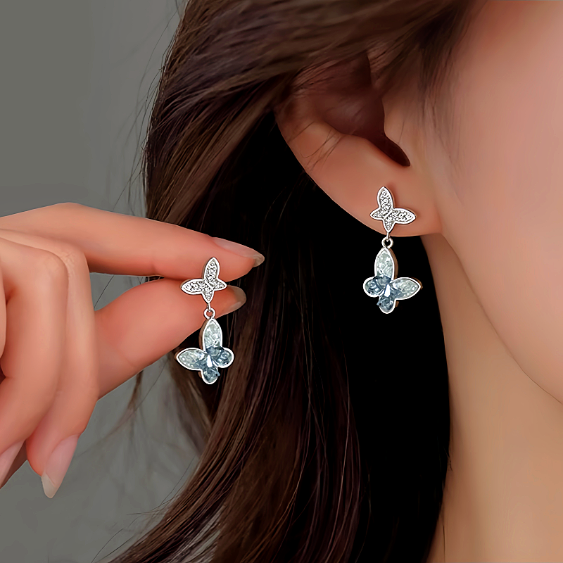 Sterling Silver Diamond Butterfly Earrings