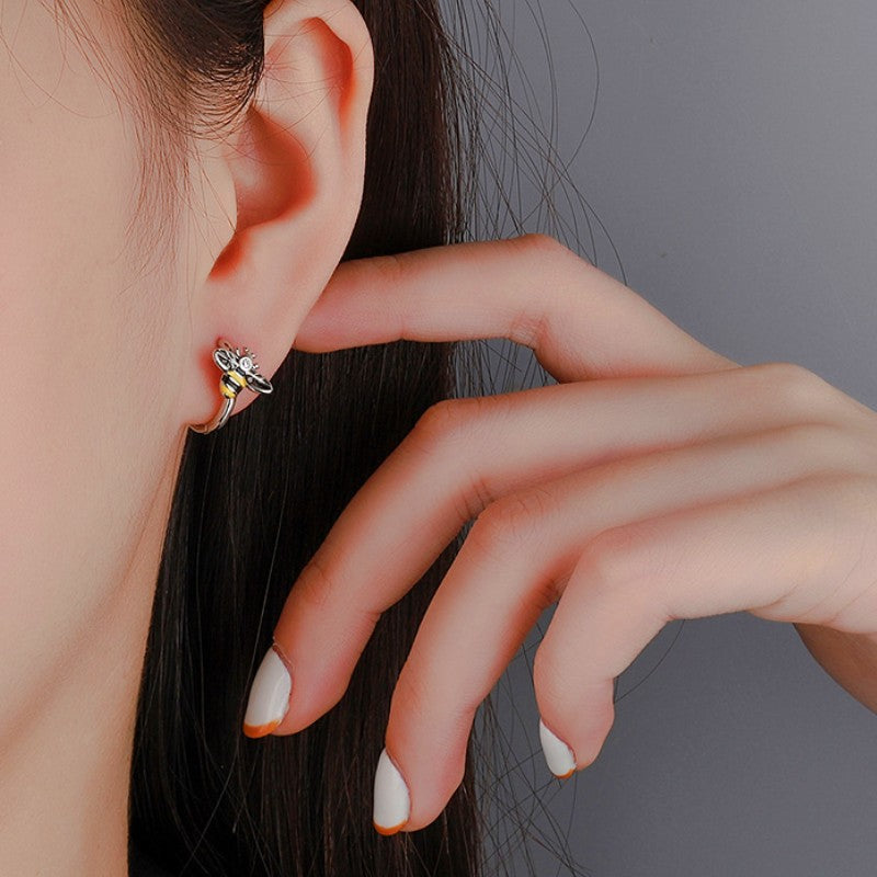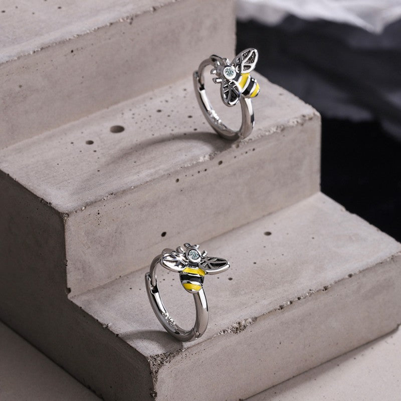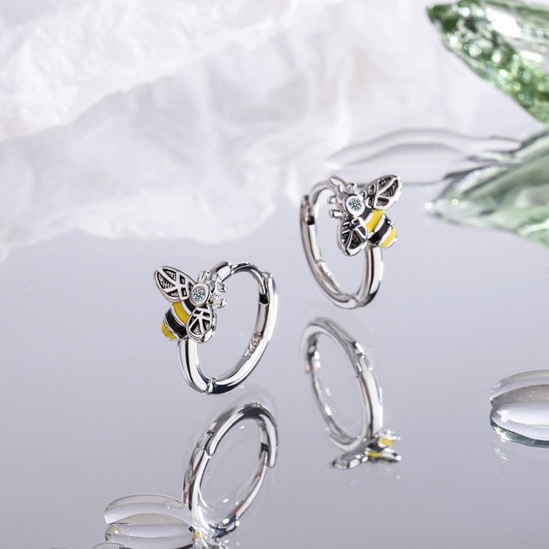 Sterling Silver Diamond-Encrusted Bee Earrings