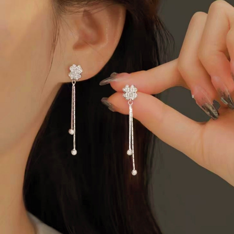 Sterling Silver Diamond Four-Leaf Clover Earrings