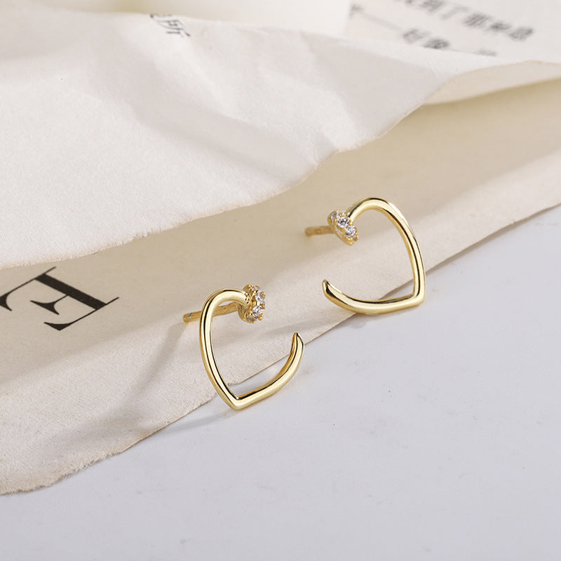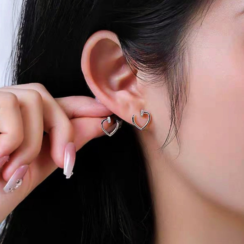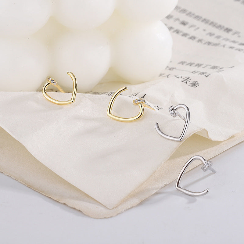 Sterling Silver Diamond Heart-Design Stud Earrings