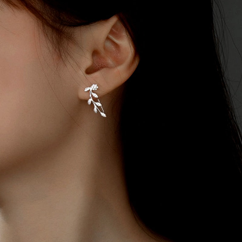 Sterling Silver Diamond Olive Branch Earrings