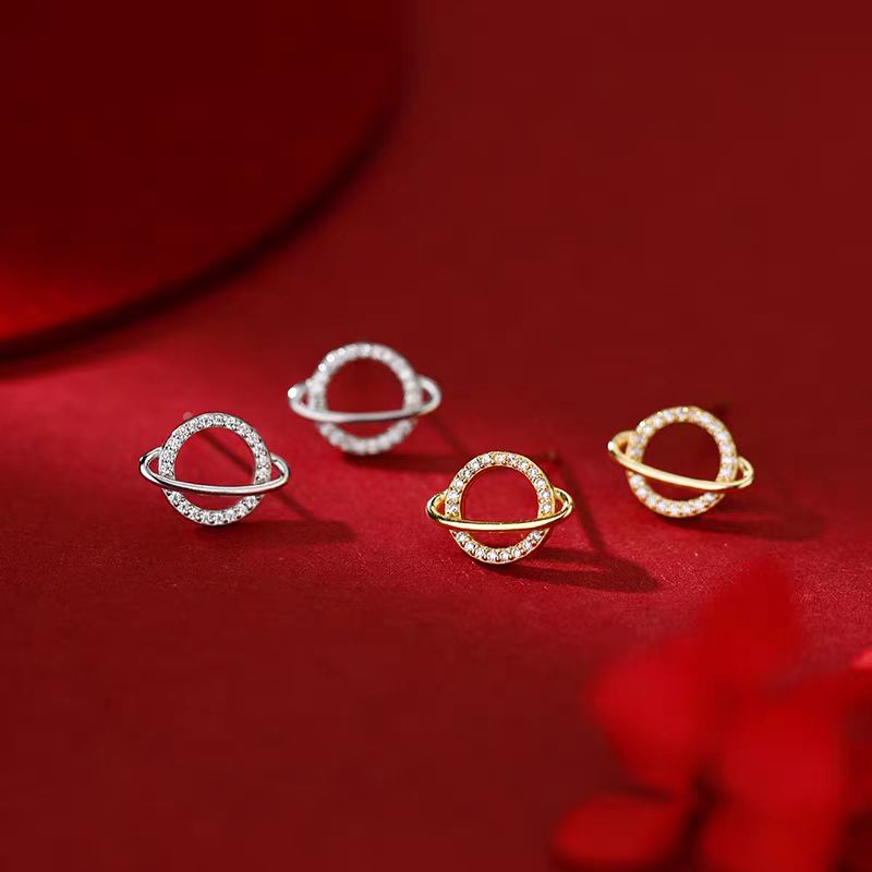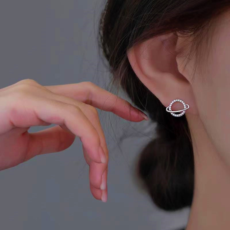 Sterling Silver Diamond Planet Stud Earrings