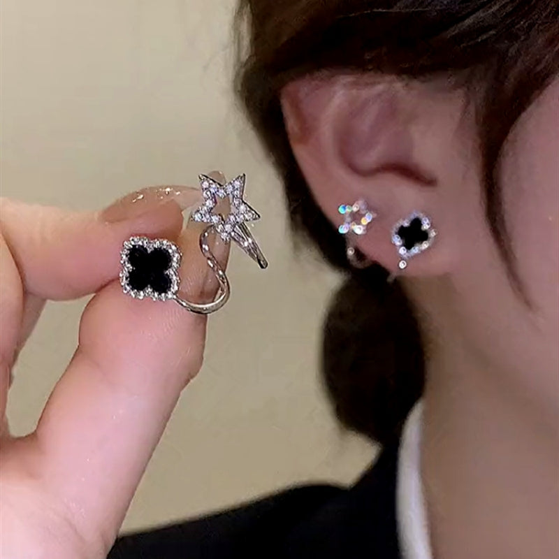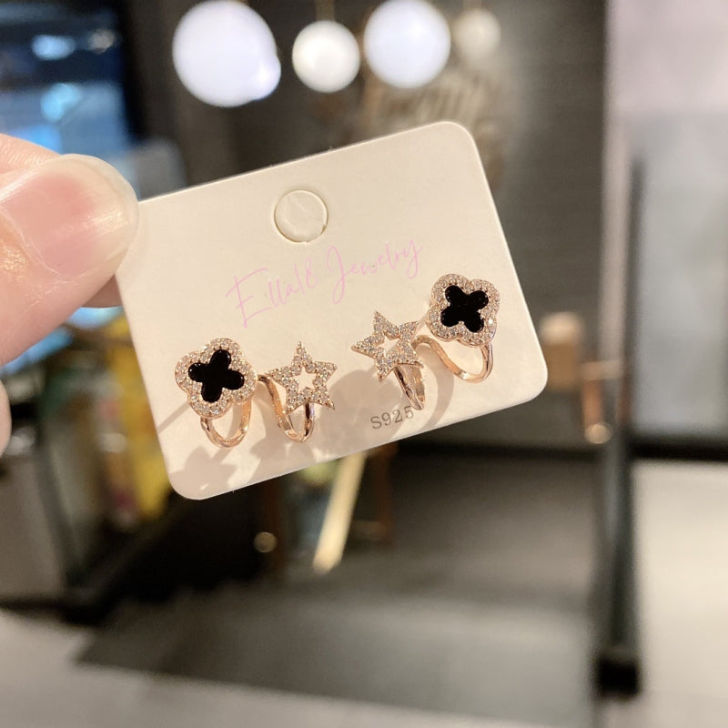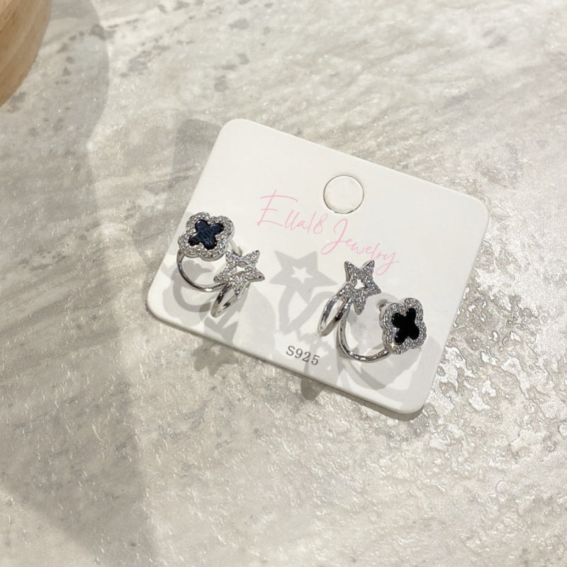 Sterling Silver Diamond Star Lukcy Clover Studs