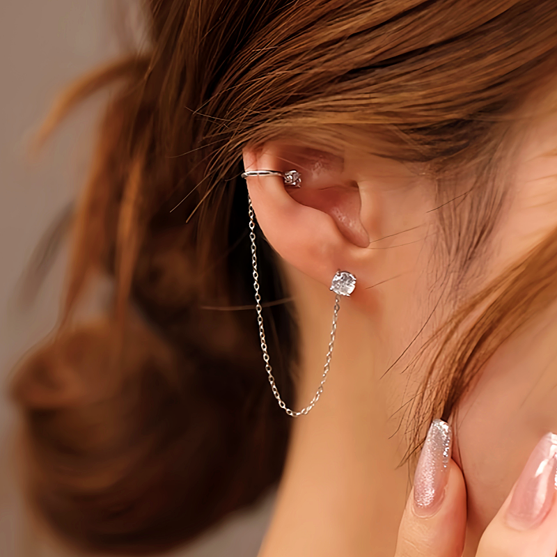 Sterling Silver Diamond Tassel Clip Earrings