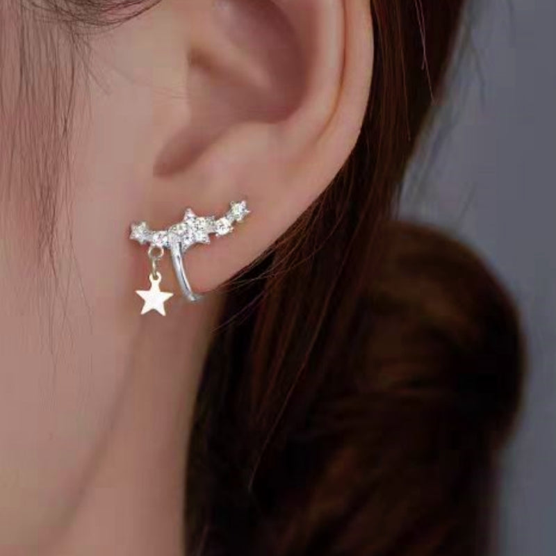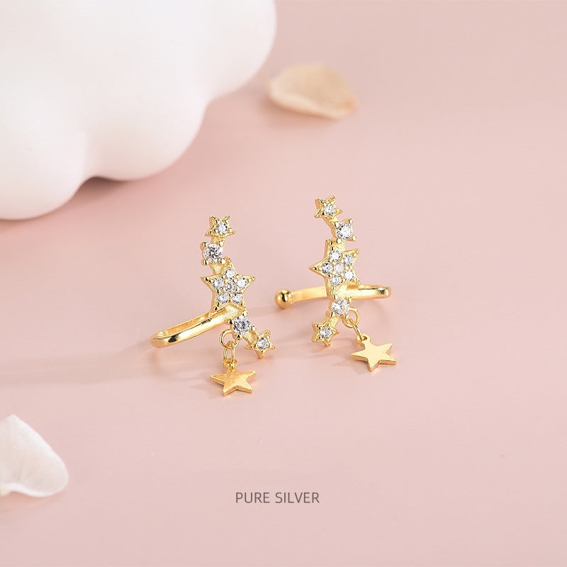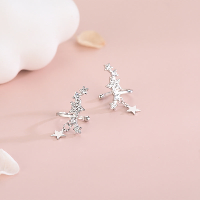 Sterling Silver Diamond Zircon Star Ear Clips