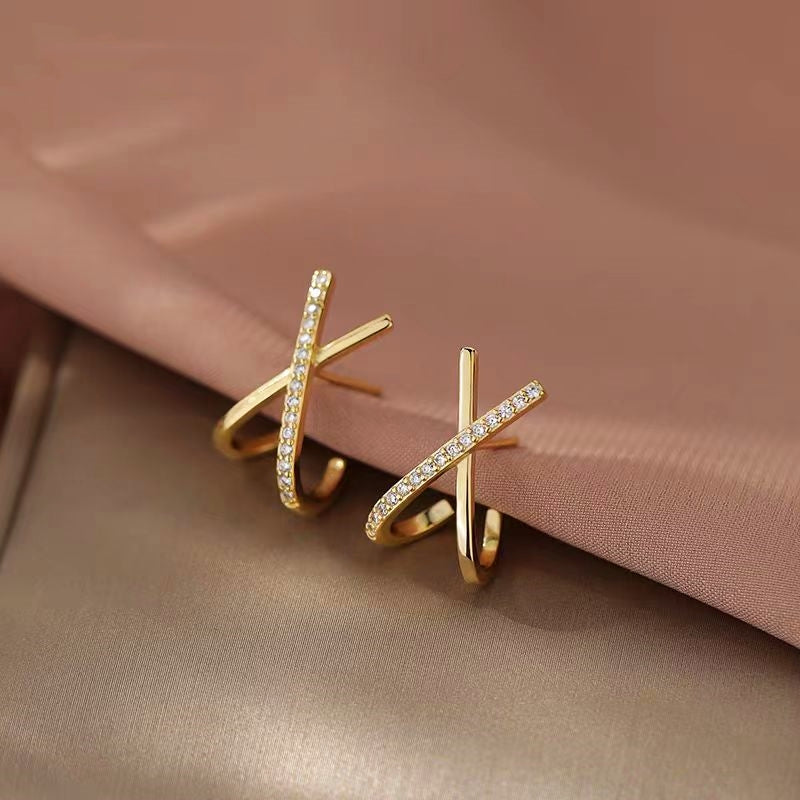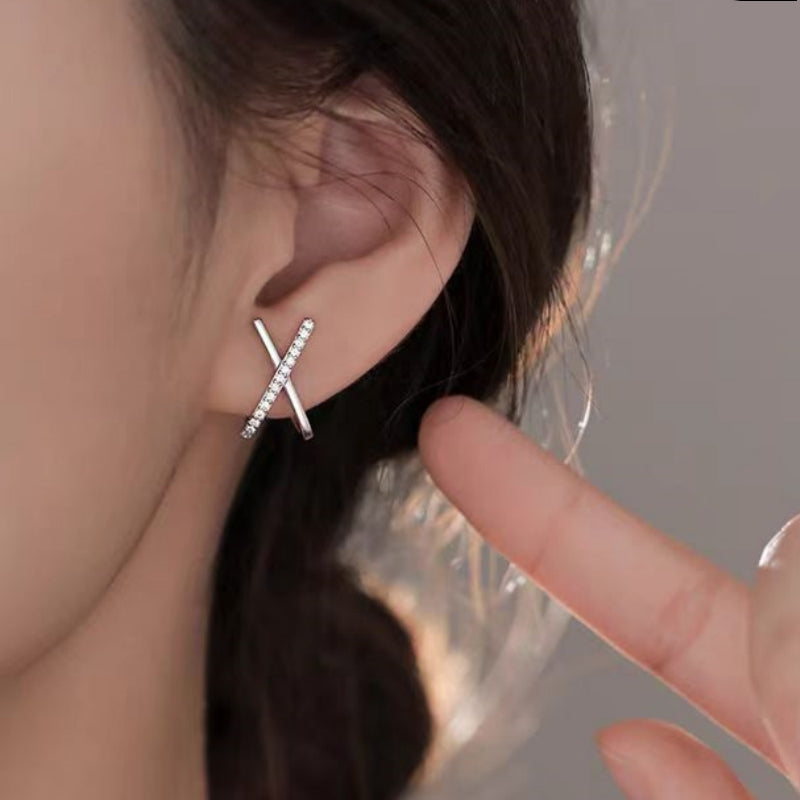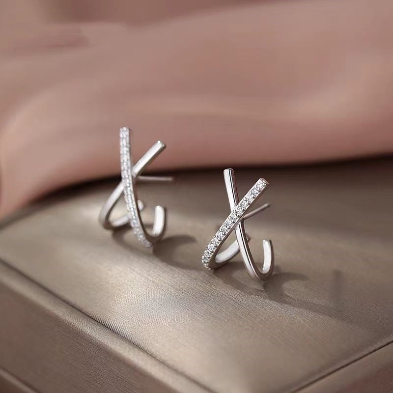 Sterling Silver Diamonds X-Shaped Stud Earrings
