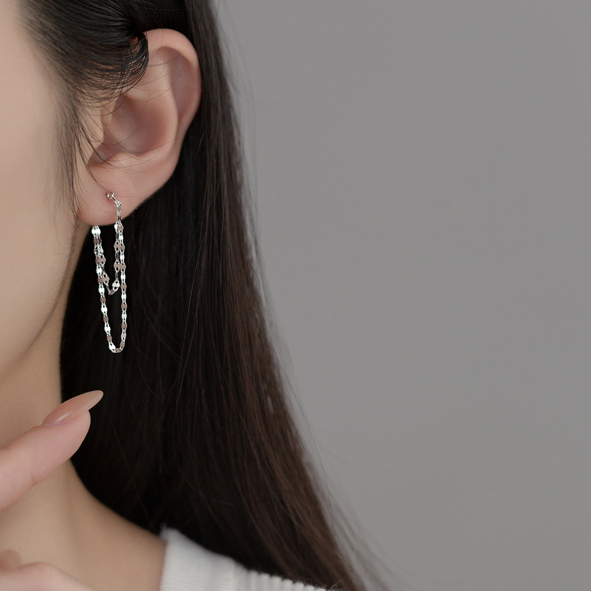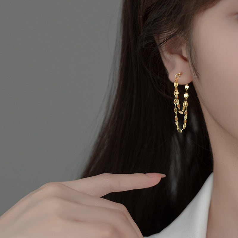 Sterling Silver Double-layer Chain Earrings