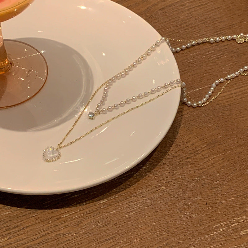 Sterling Silver Double-Layer Pearl And Heart Necklaces