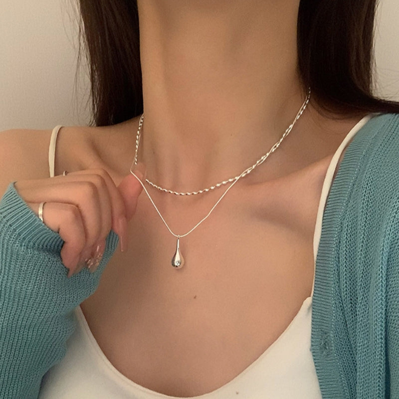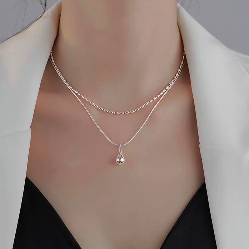 Sterling Silver Double Layer Water Drop Necklaces