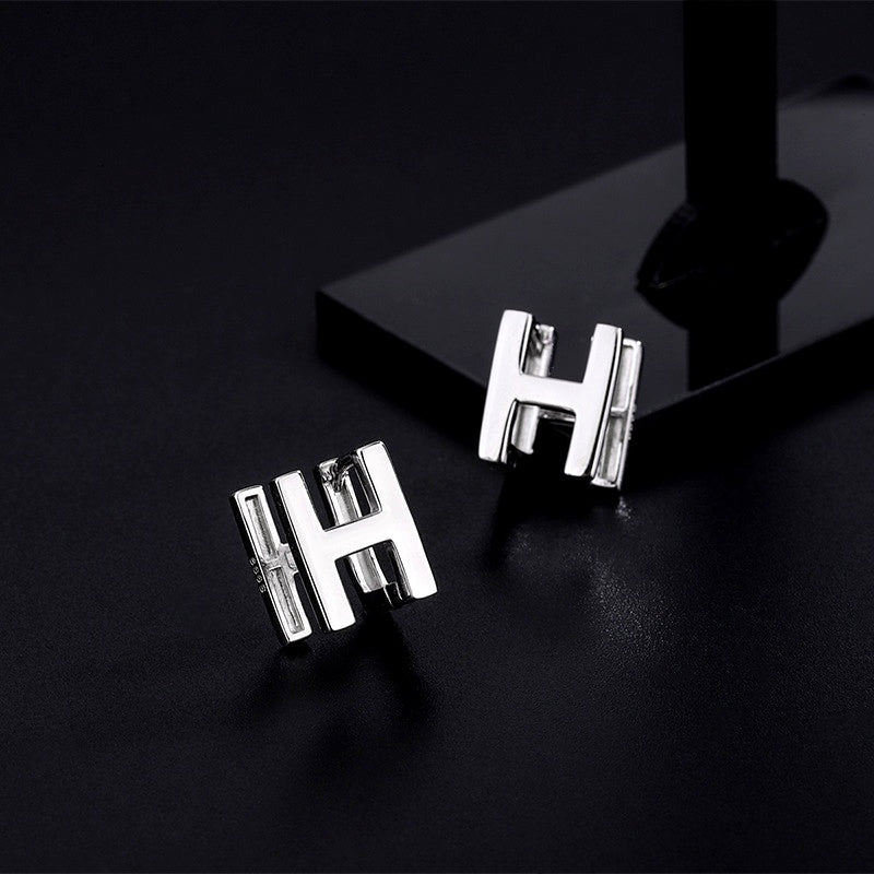 Sterling Silver Double-Sided Letter H Stud Earrings