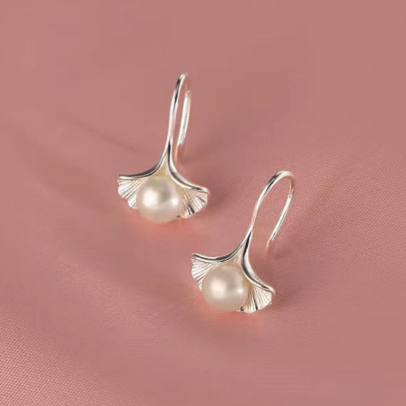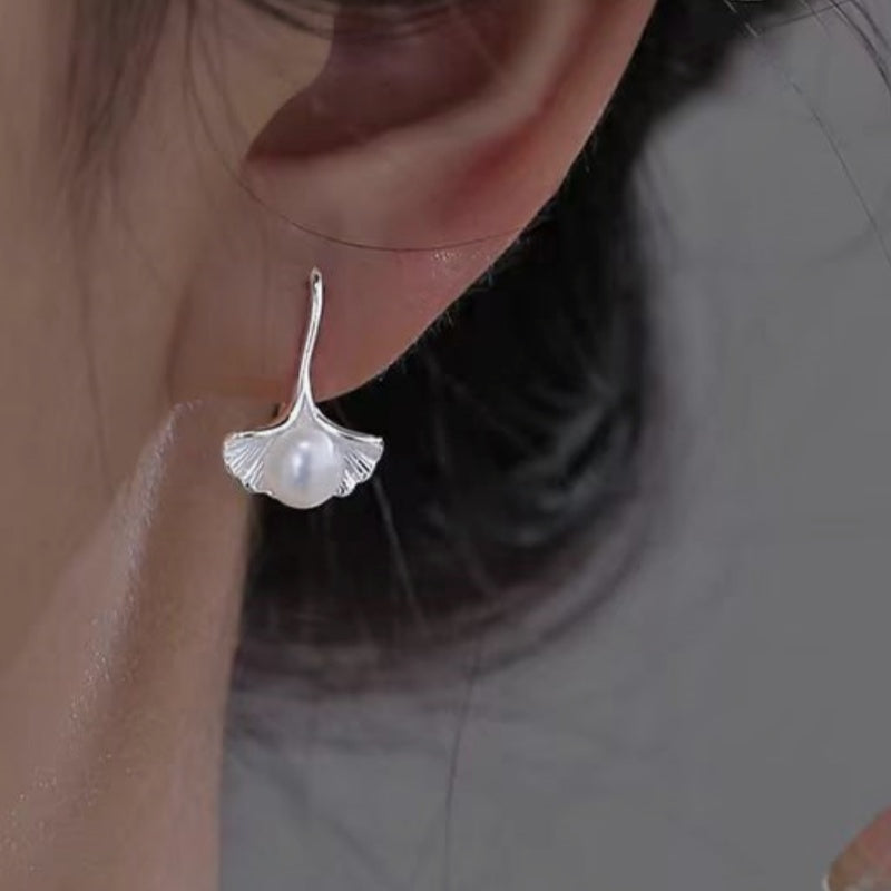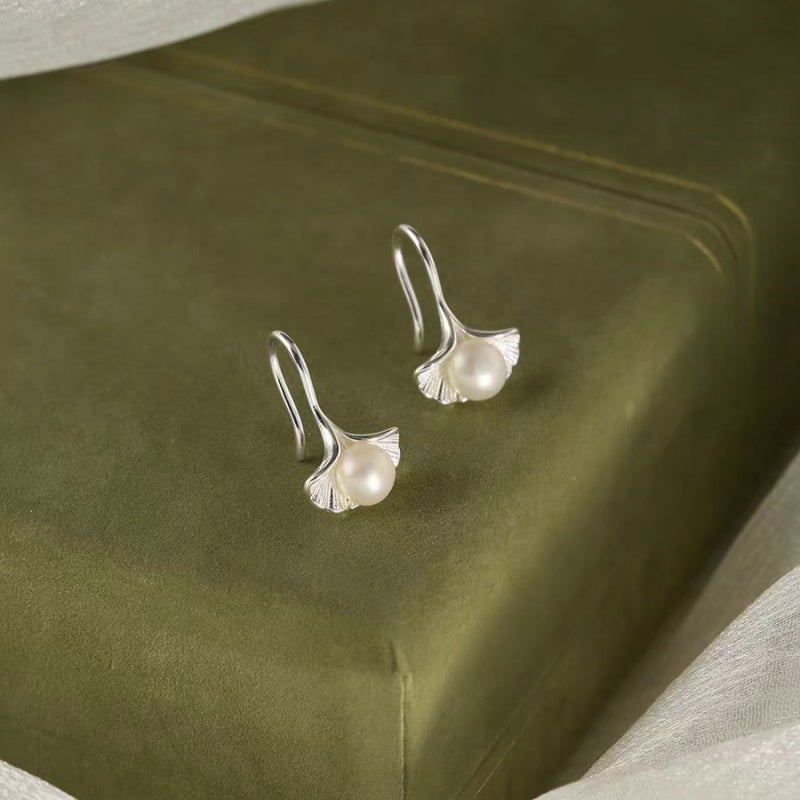Sterling Silver Earrings Ginkgo Leaf Pearl Earrings