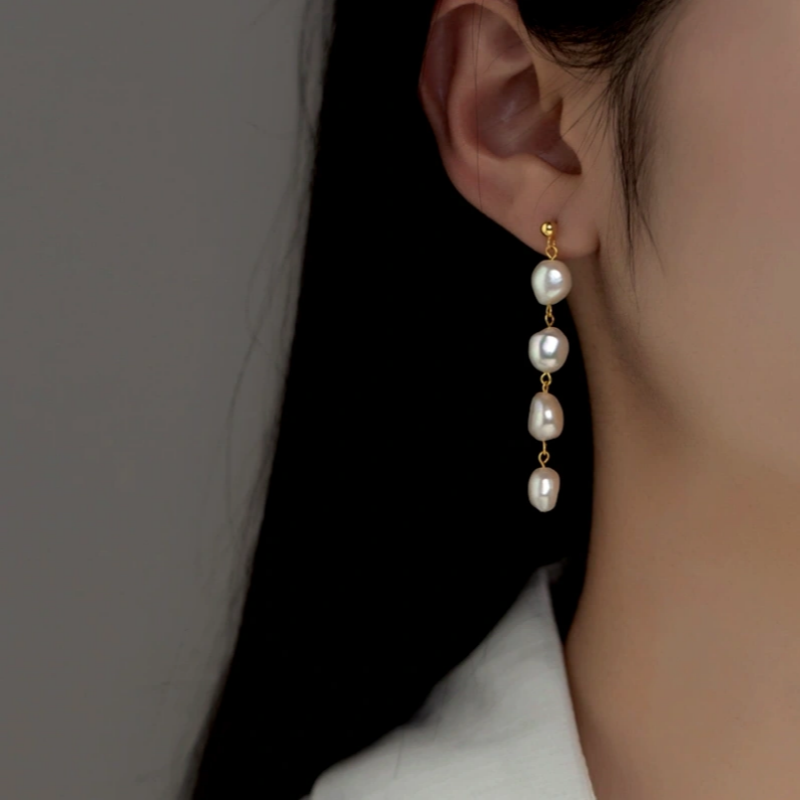 Sterling Silver Elegant Baroque Pearl Tassel Earrings