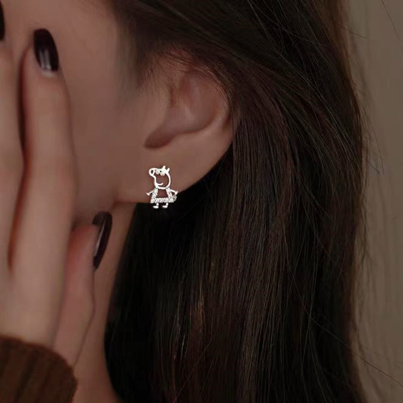 Sterling Silver Elegant Cartoon Peppa Pig Studs