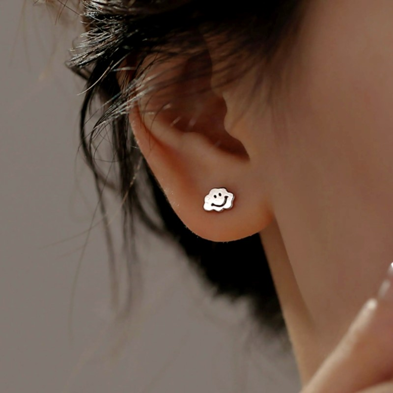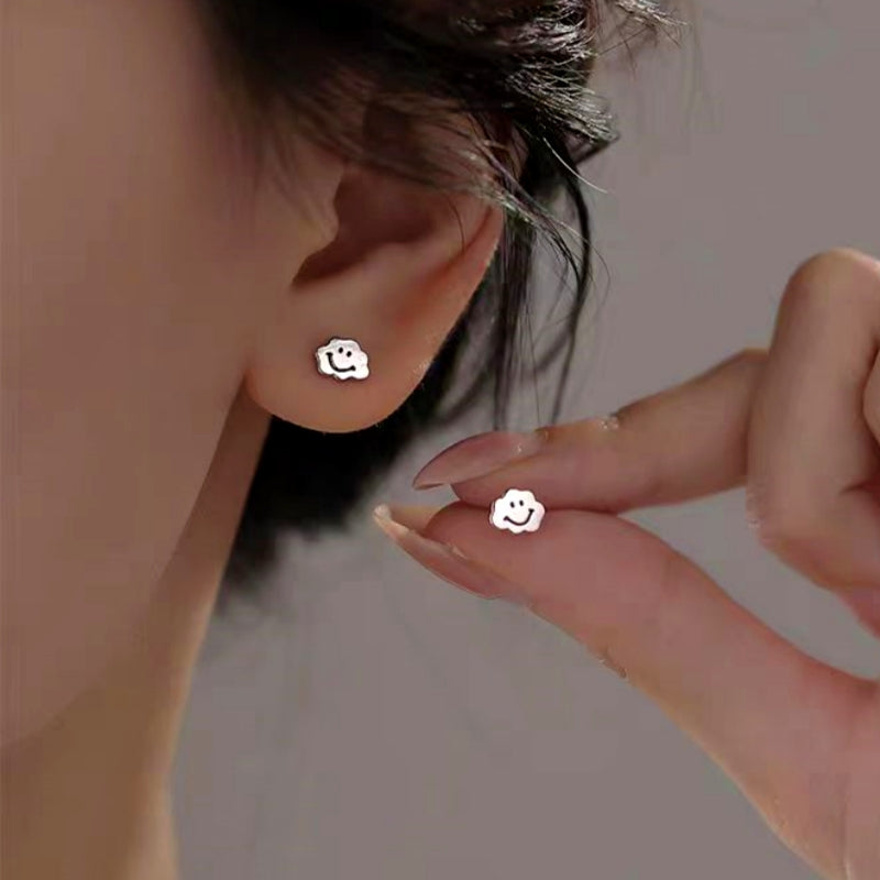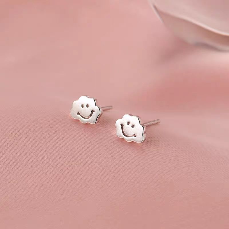 Sterling Silver Elegant Cloud Smile Expression Stud Earrings