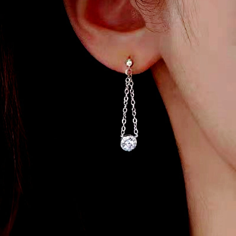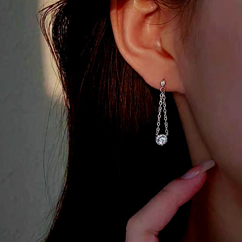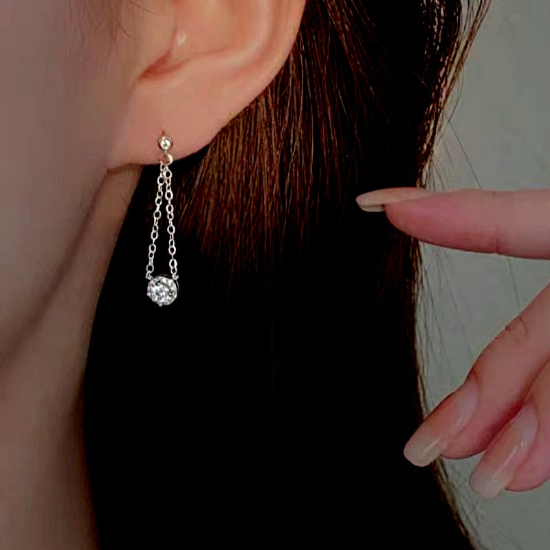 Sterling Silver Elegant Diamond Ball Tassel Earrings