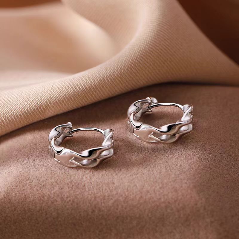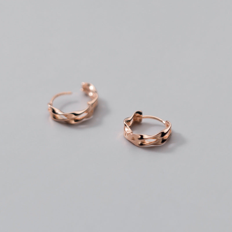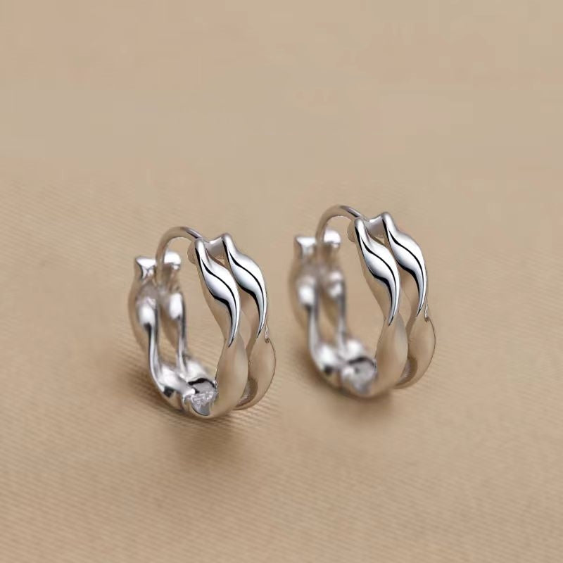 Sterling Silver Elegant Double Layer Wavy Hoop Earrings