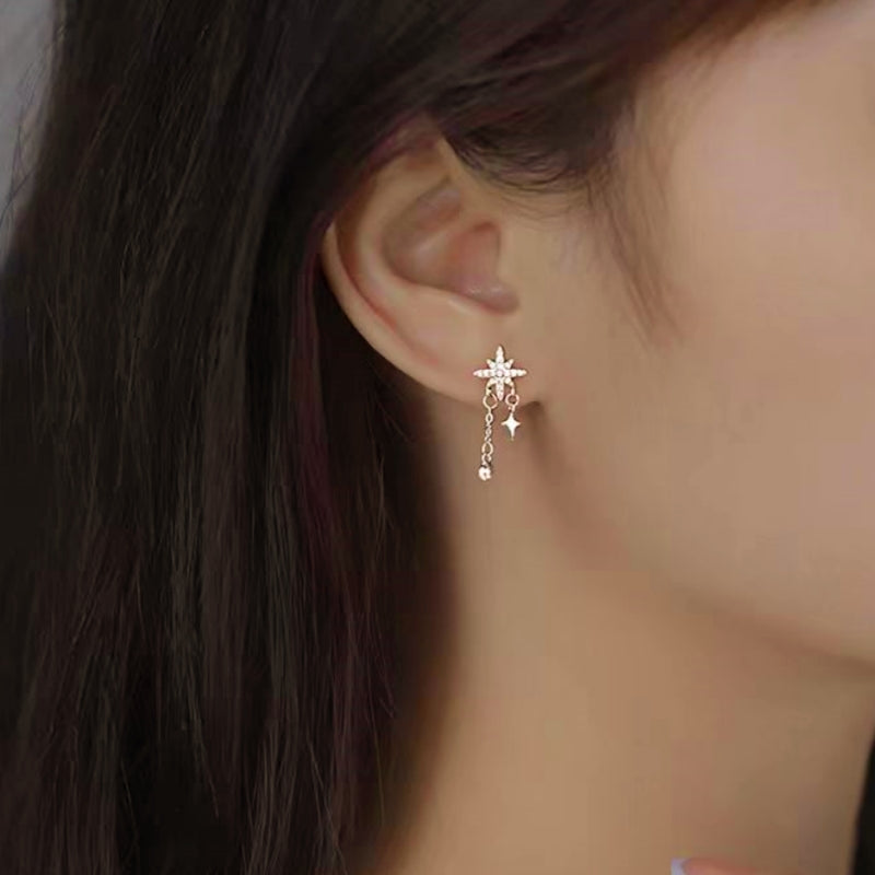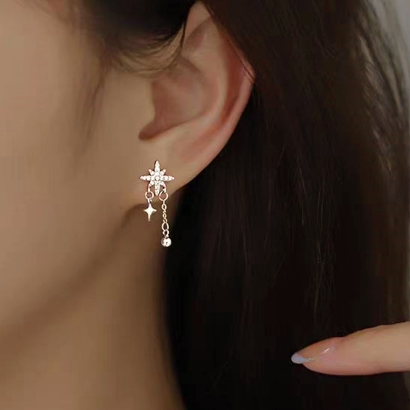 Sterling Silver Elegant Eight-Pointed Star Earrings