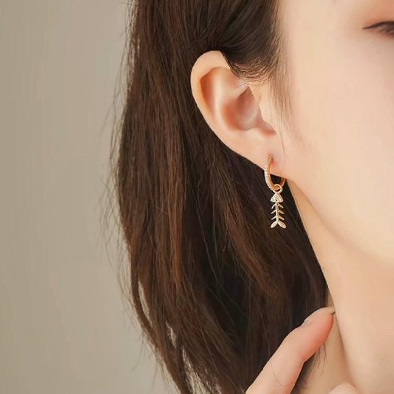 Sterling Silver Elegant Fish Bone Design Earrings