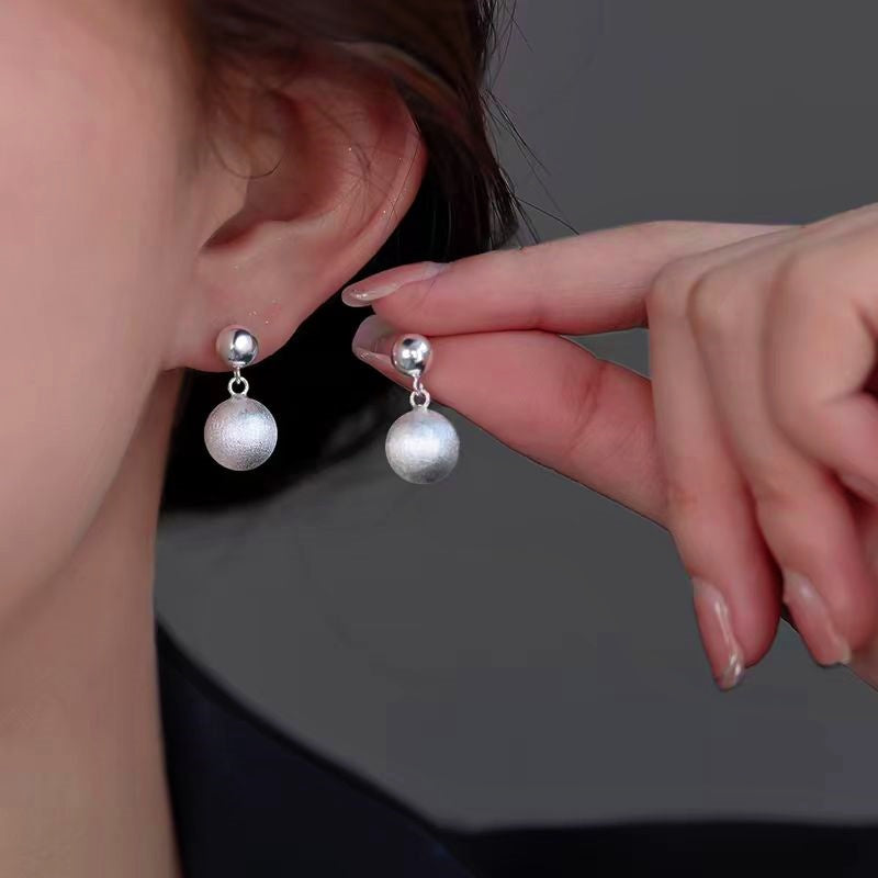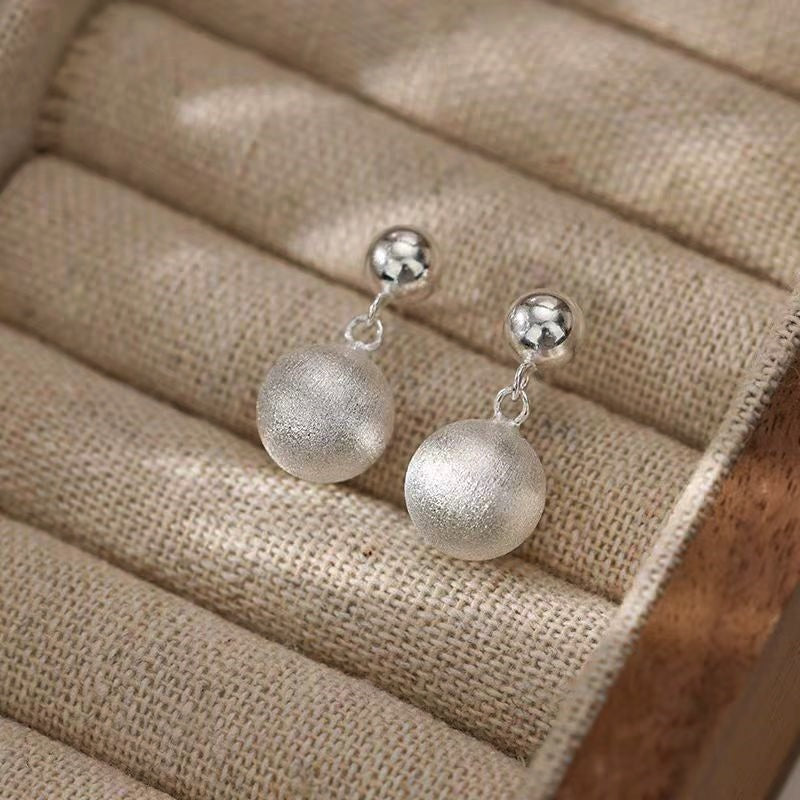 Sterling Silver Elegant Glossy Brushed Ball Earrings