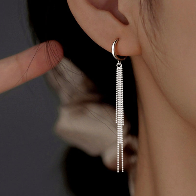 Sterling Silver Elegant Long Tassel Earrings
