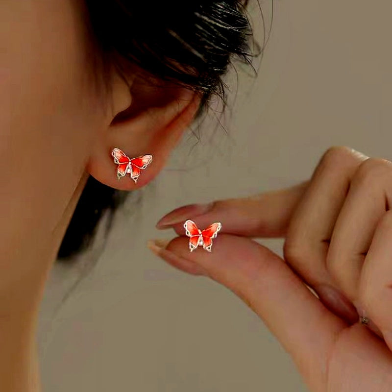 Sterling Silver Elegant Orange Butterfly Stud Earrings