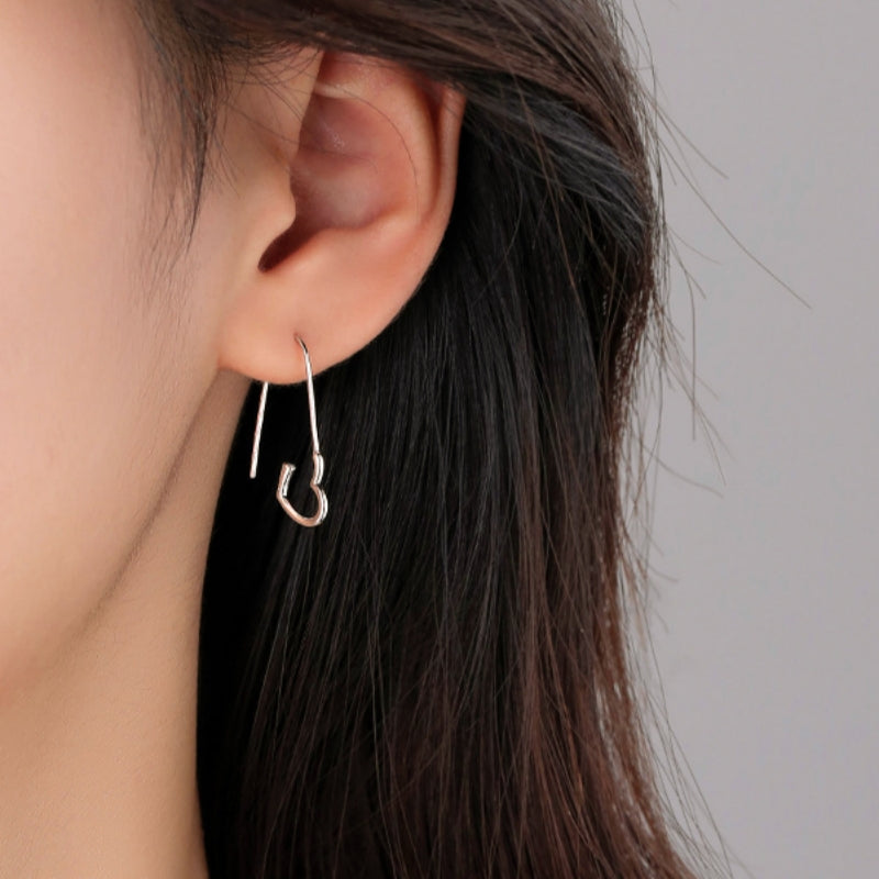 Sterling Silver Elegant Pin Heart-Design Earrings