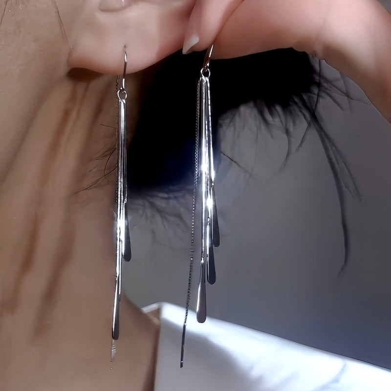 Sterling Silver Elegant Water Drop Threader Earrings