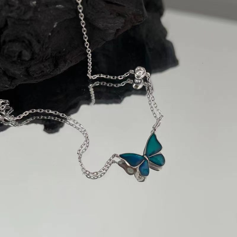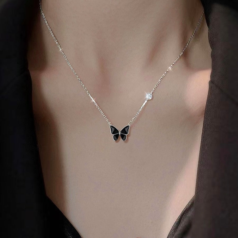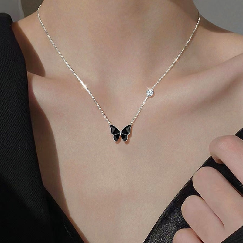 Sterling Silver Elegent Black And Blue Butterfly Necklaces