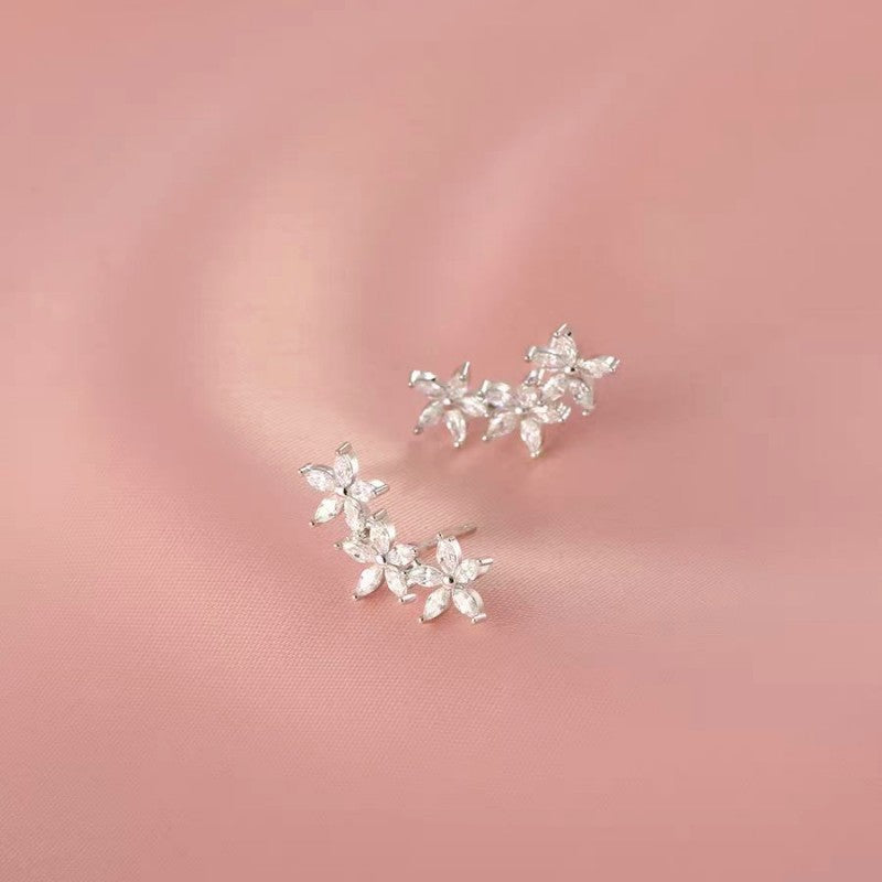 Sterling Silver Five-Petal Flower Diamond Stud Earrings