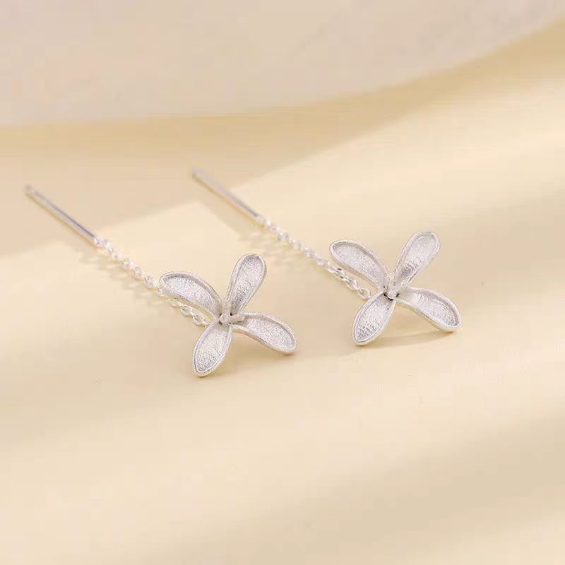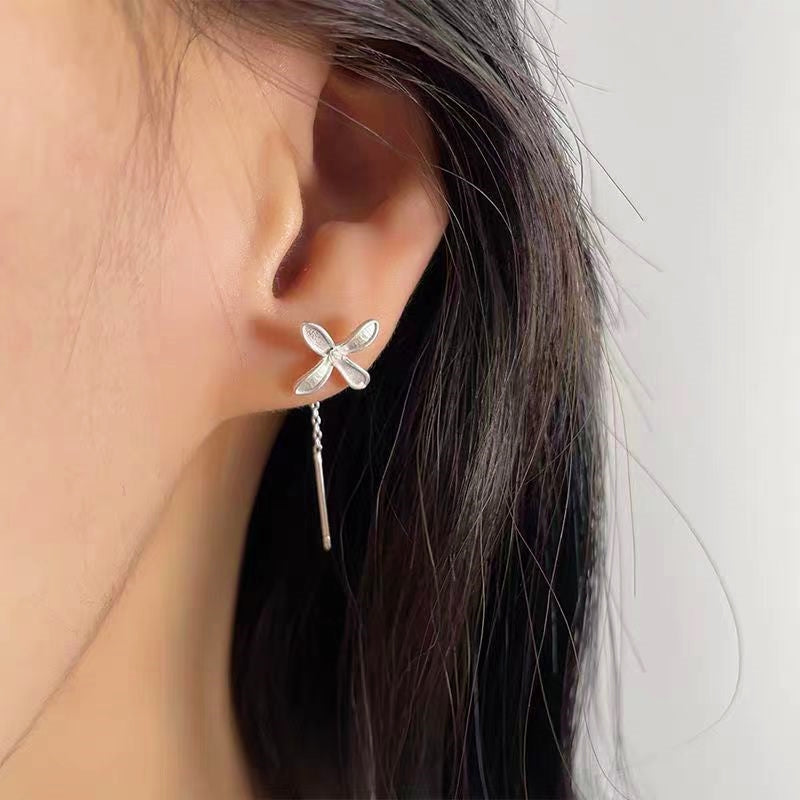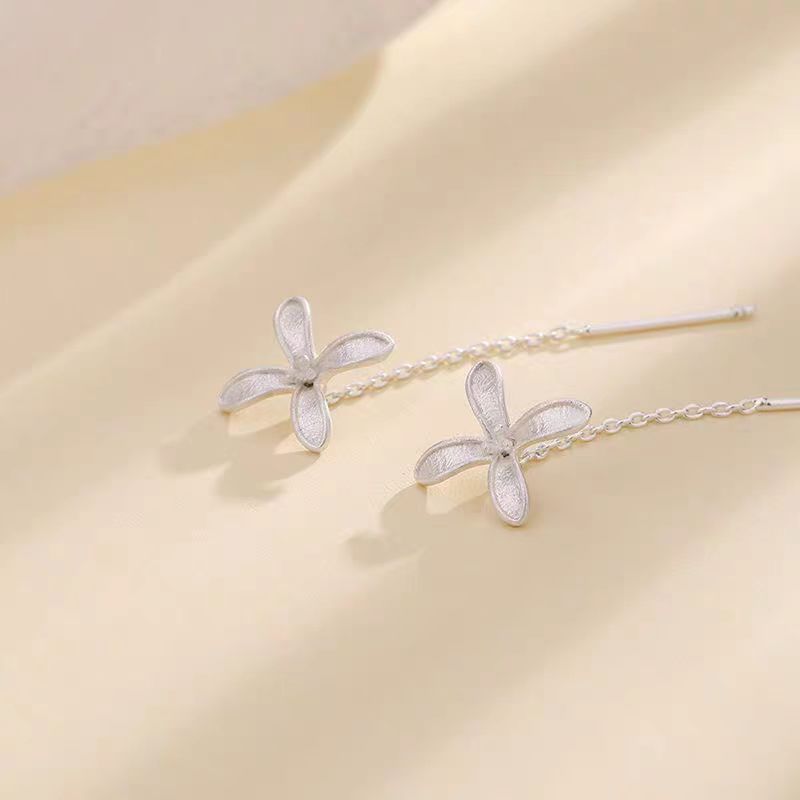 Sterling Silver Four-Leaf Flower Threader Earrings
