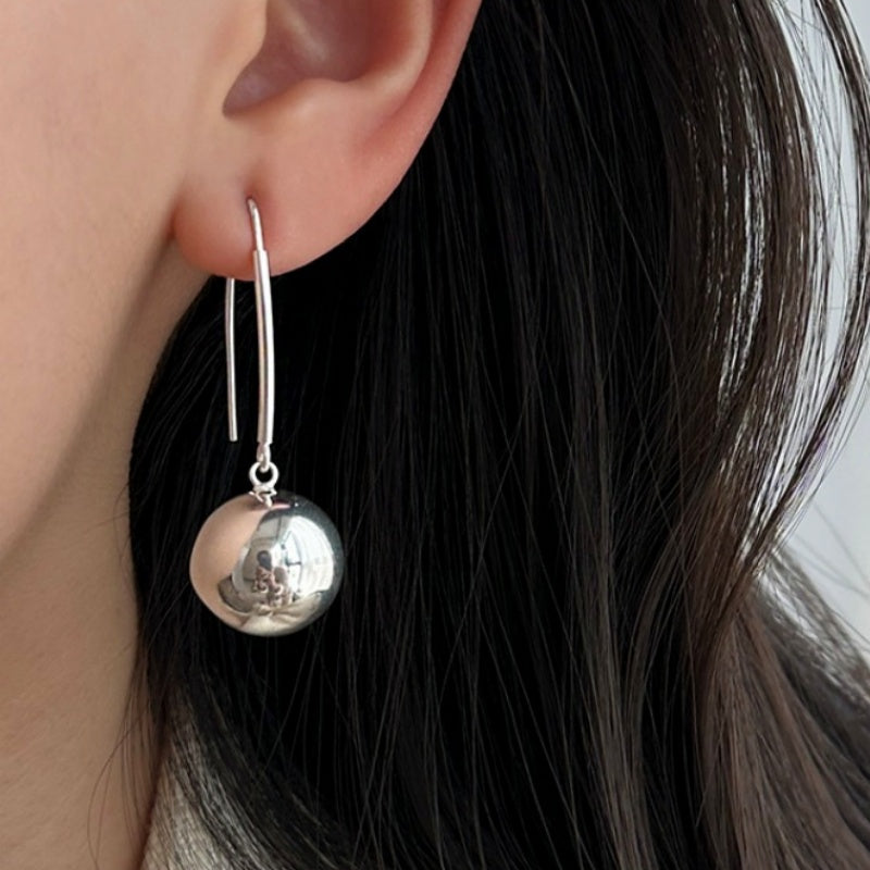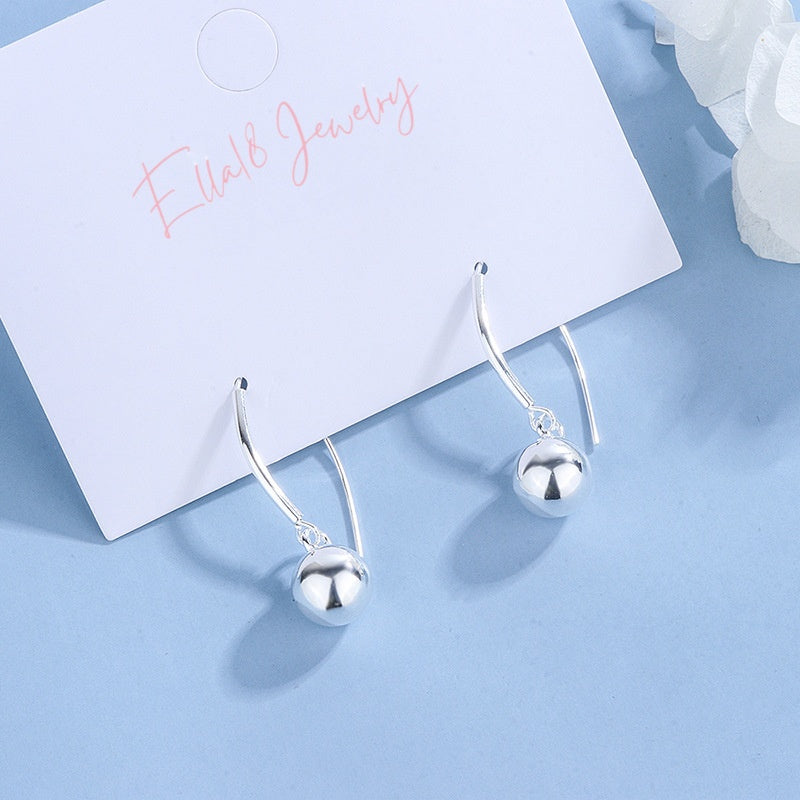 Sterling Silver Geometric Ball Bead Curved Hook Earrings