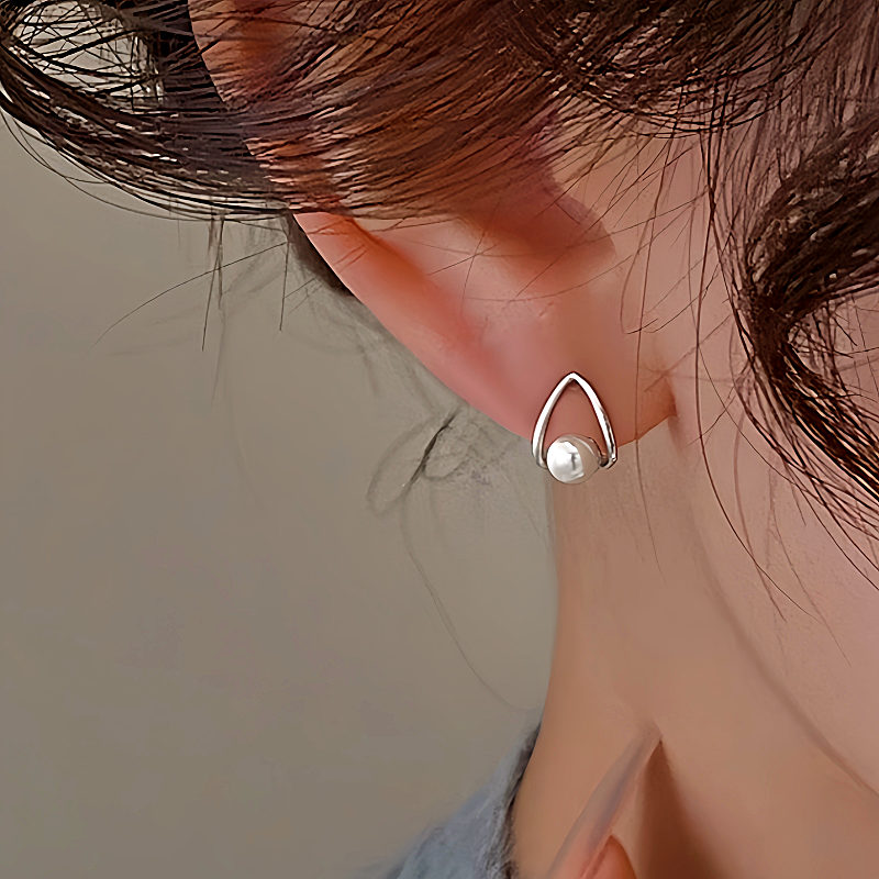 Sterling Silver Geometric Pearl Stud Earrings