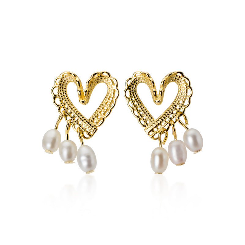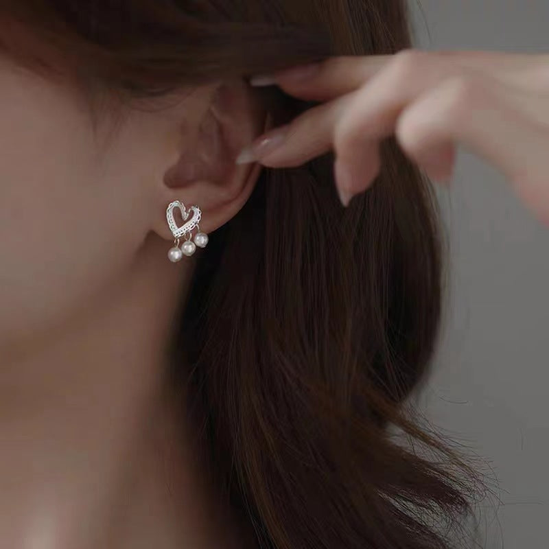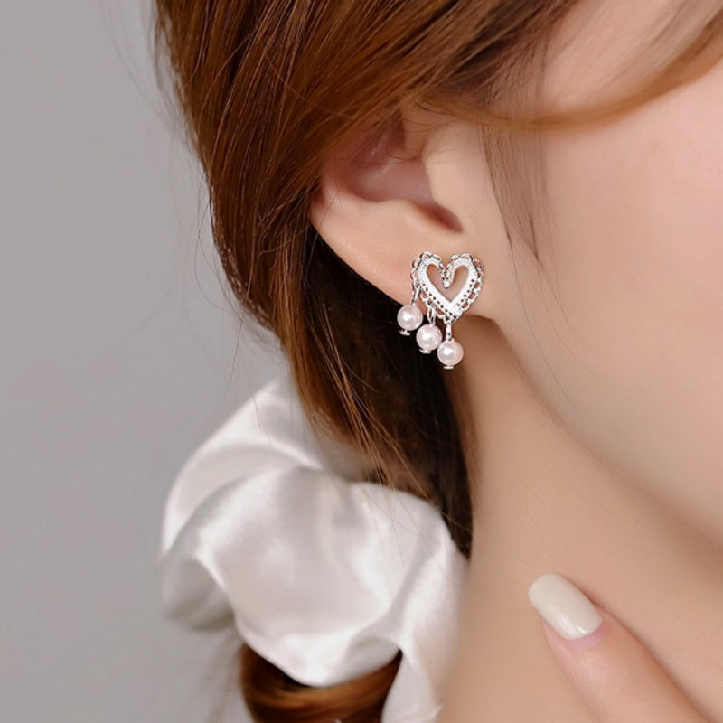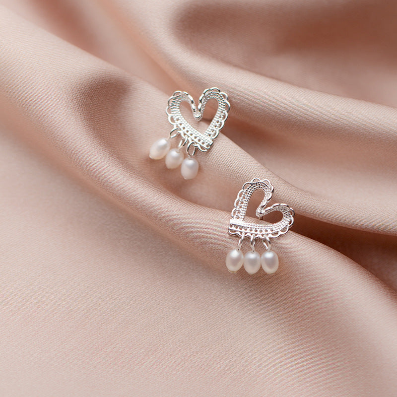Sterling Silver Heart Artificial Pearl Stud Earrings