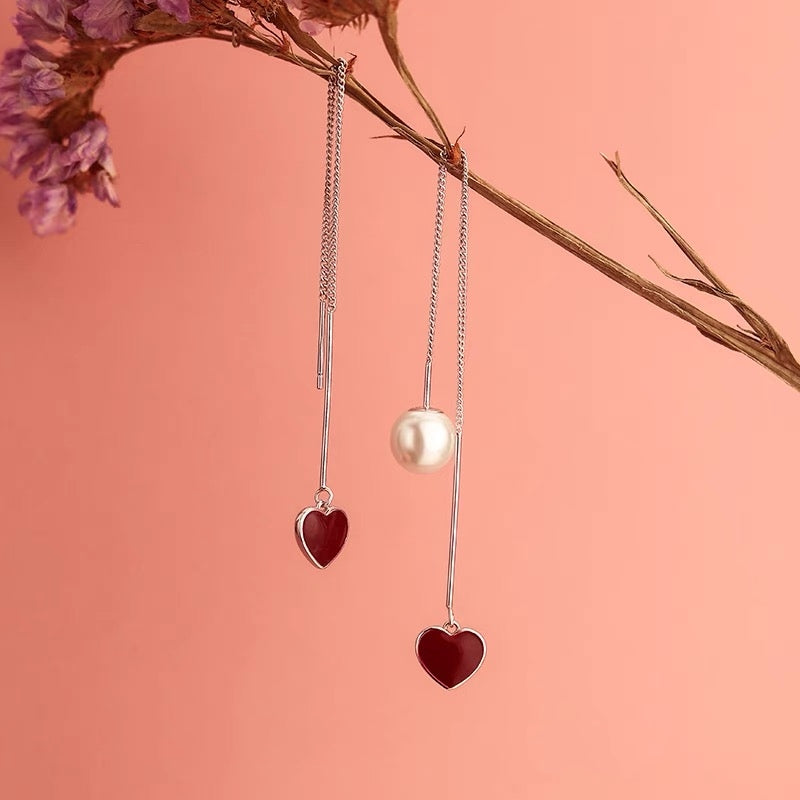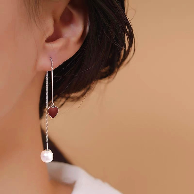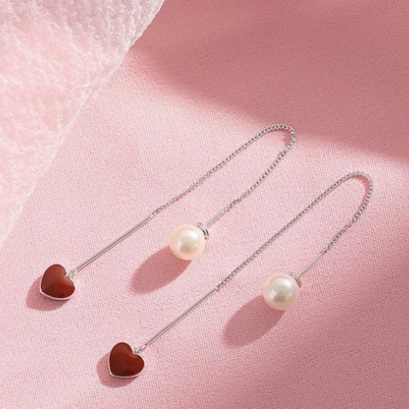 Sterling Silver Heart Artificial Pearl Threader Earrings