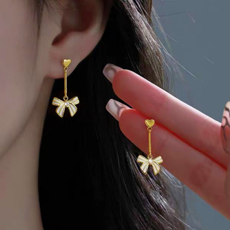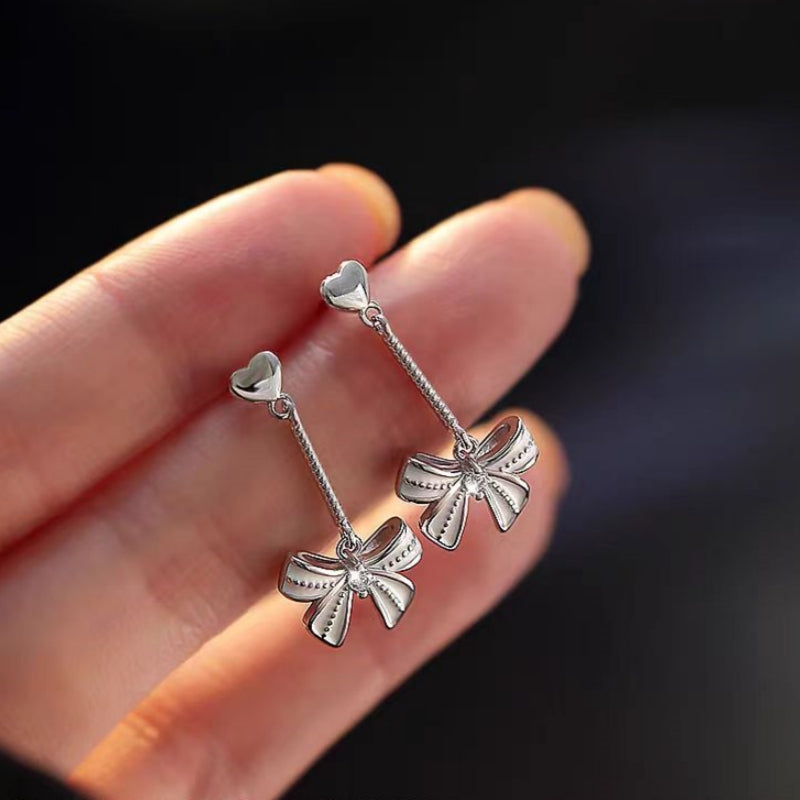 Sterling Silver Heart Bow Earrings