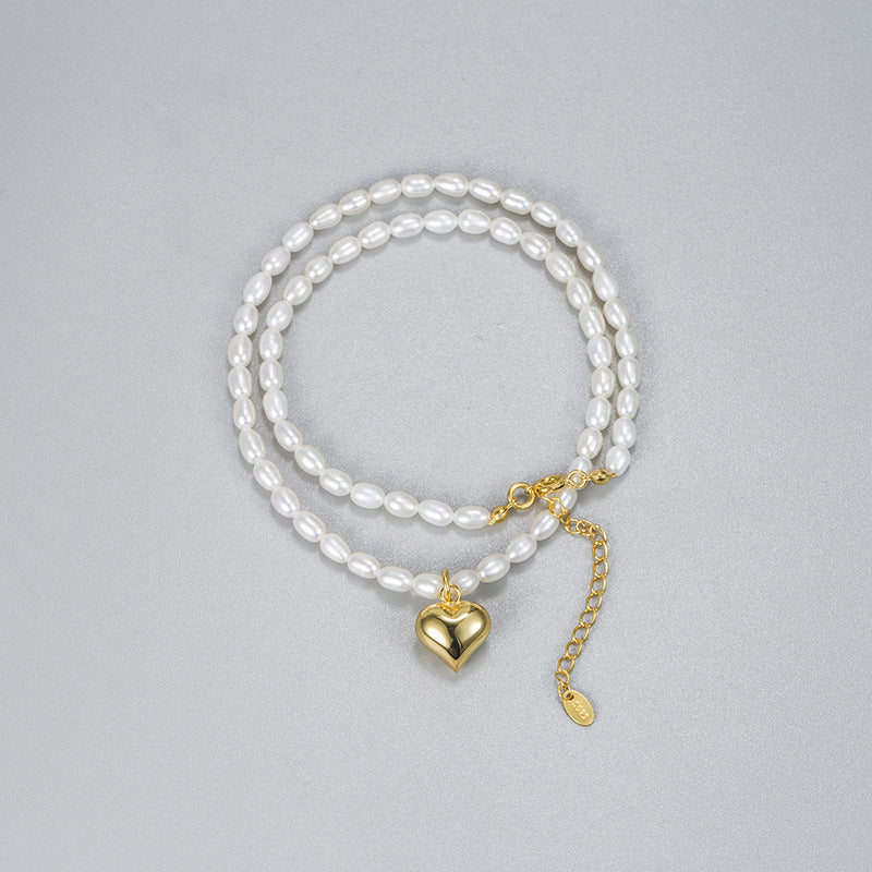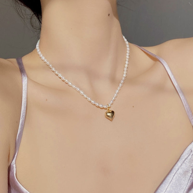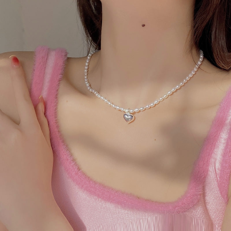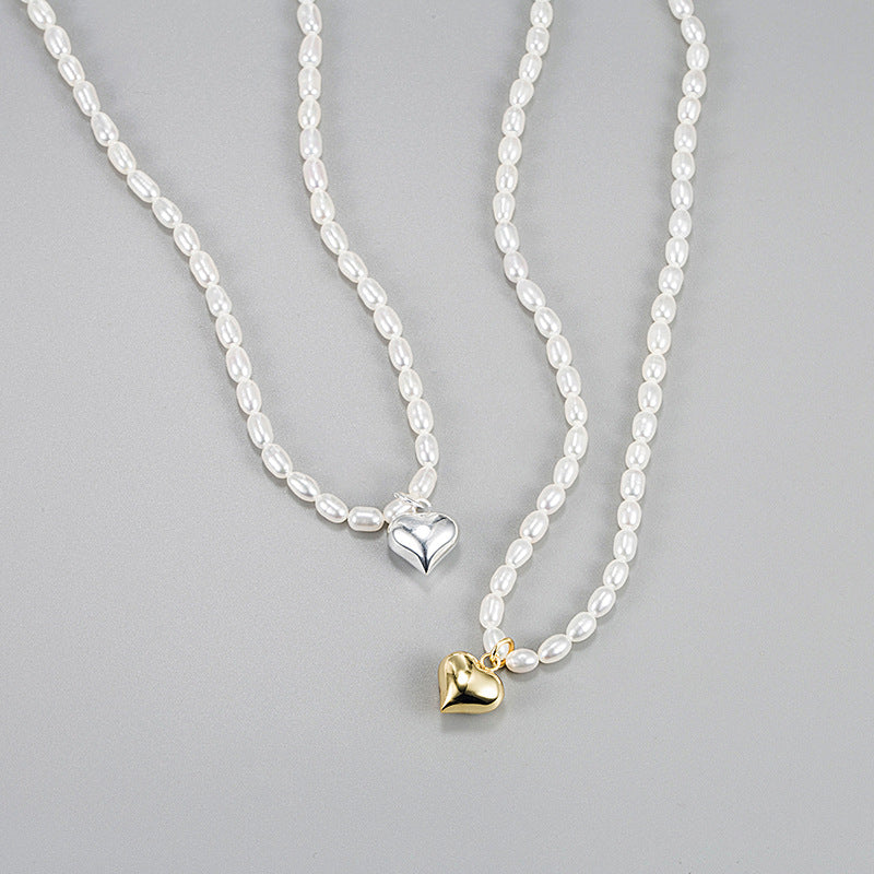 Sterling Silver Heart-Design Artificial Pearl Necklaces
