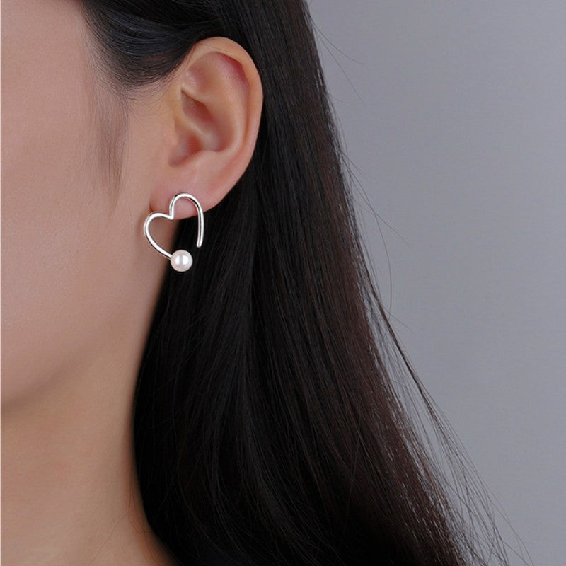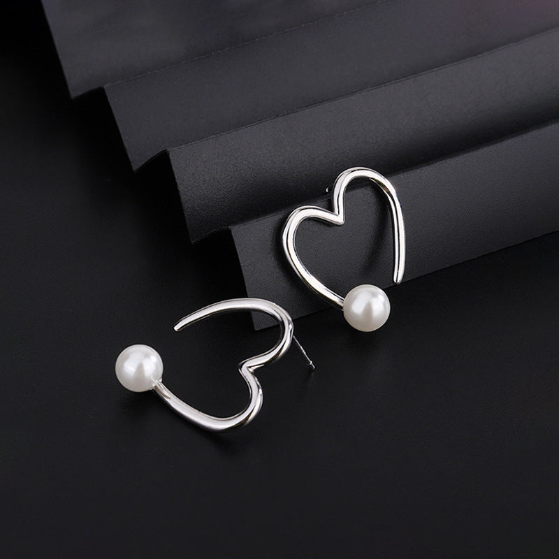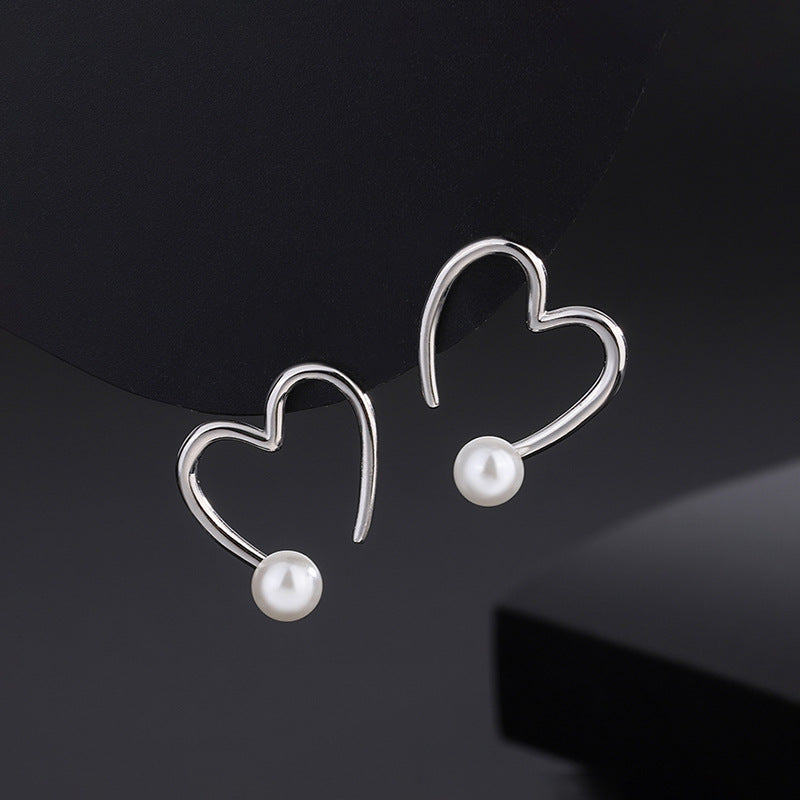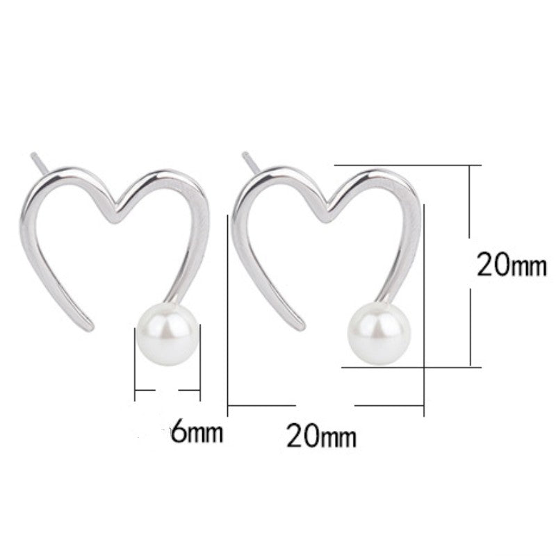 Sterling Silver Heart-Design Artificial Pearl Stud Earrings