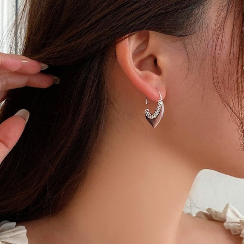 Sterling Silver Heart-Design Chian Threader Earrings