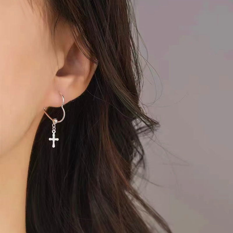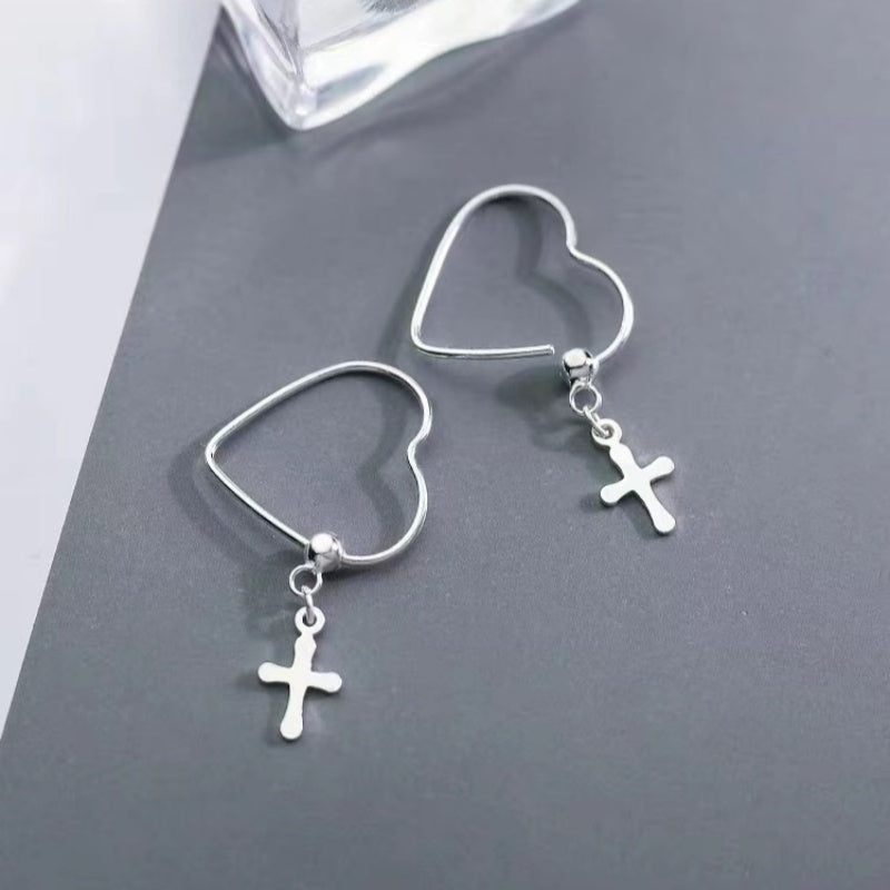 Sterling Silver Heart-Design Cross Earrings