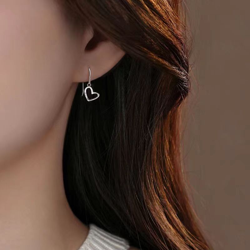Sterling Silver Heart-Design Ear Hook Earrings