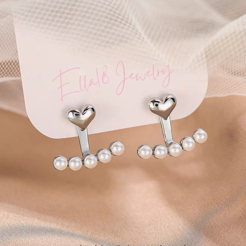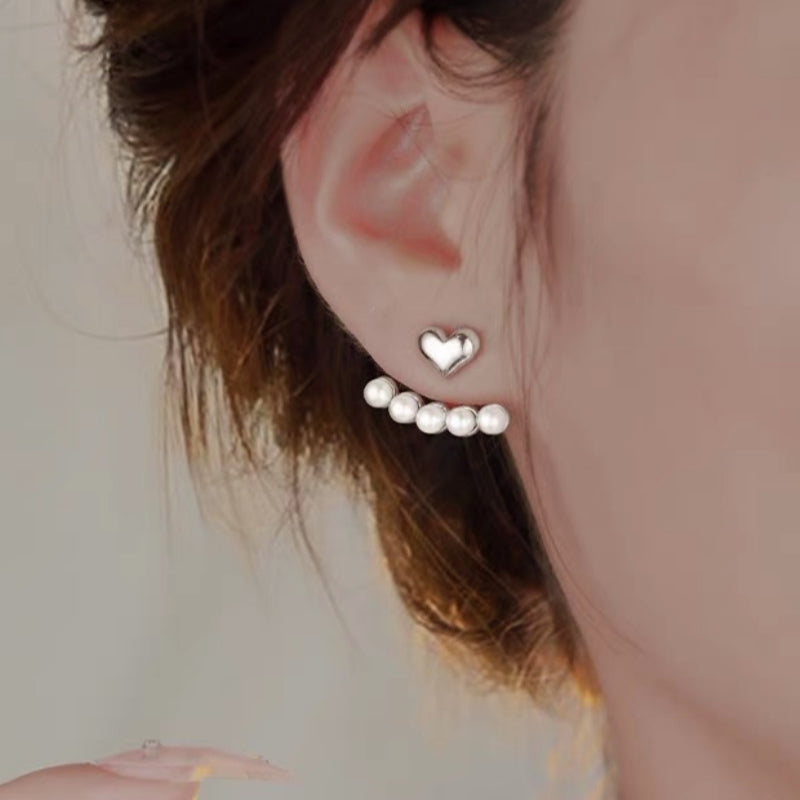 Sterling Silver Heart-Design Pearl Earrings