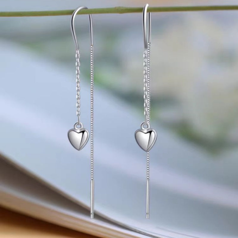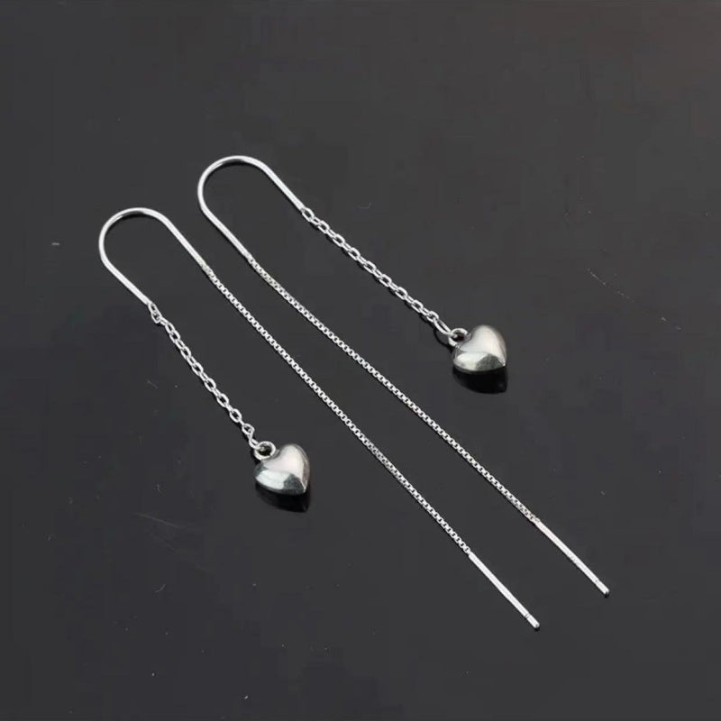 Sterling Silver Heart-Design Threader Earrings