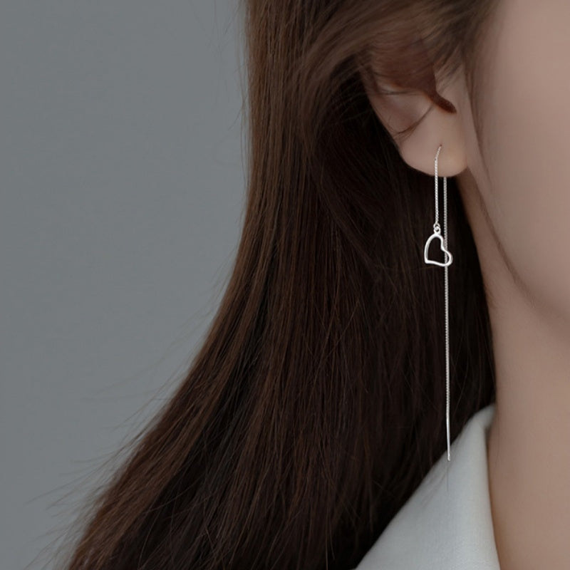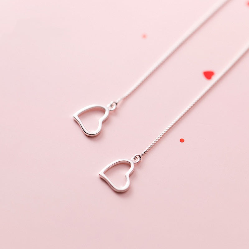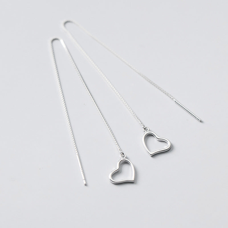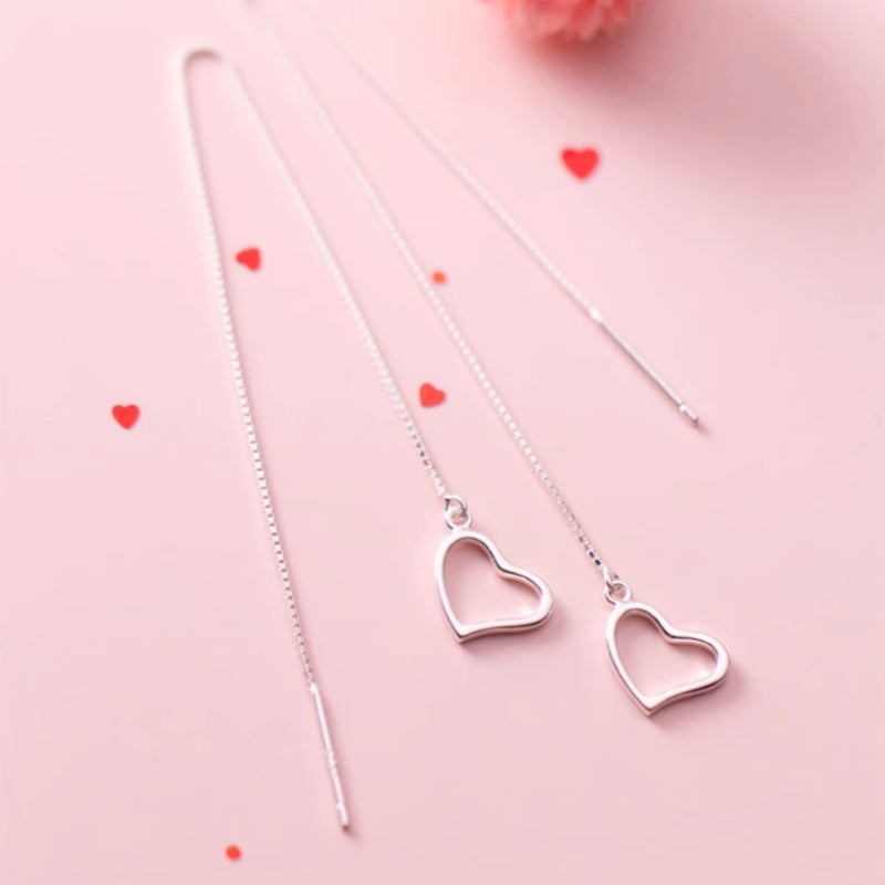 Sterling Silver Heart-Design Threader Earrings