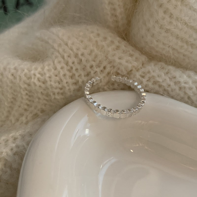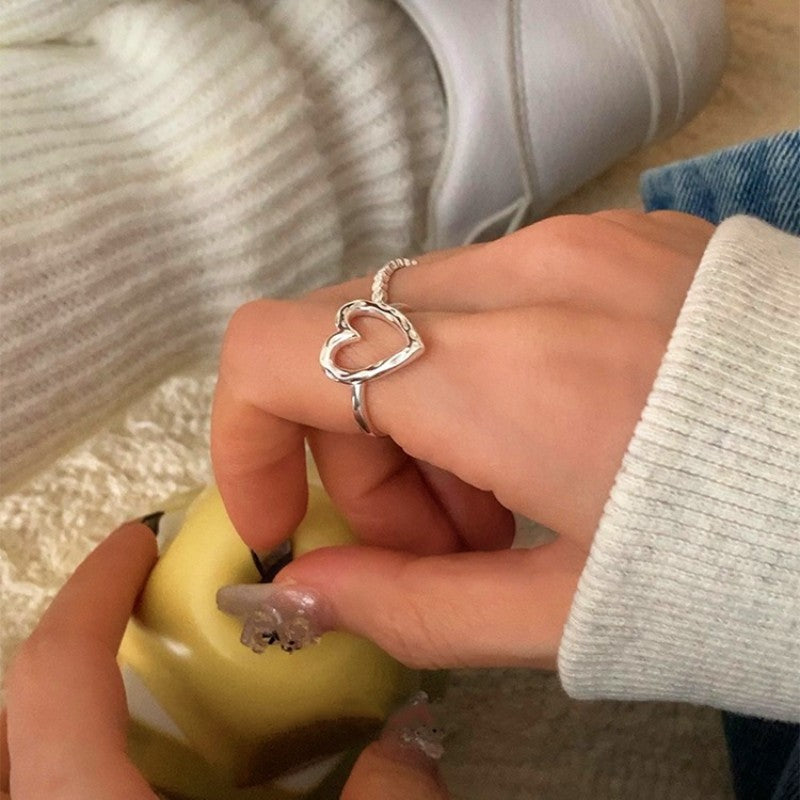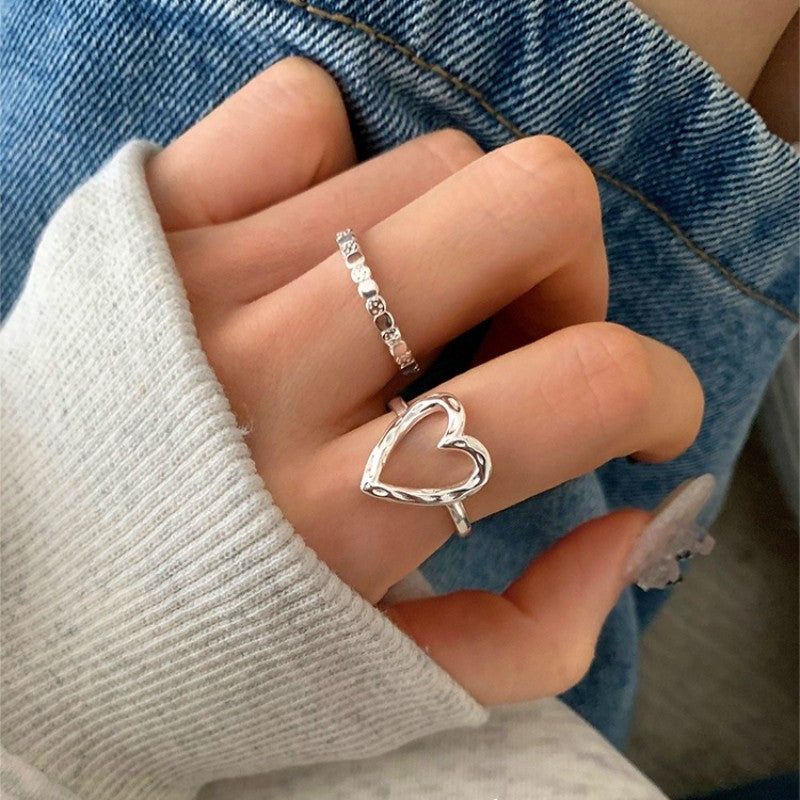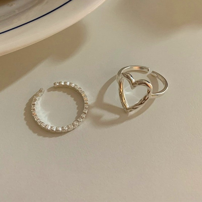 Sterling Silver Hellow Heart And Lava Square Rings ( 2 Pcs )