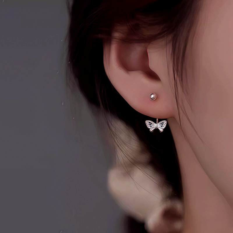 Sterling Silver Hollow Butterfly Jacket Earrings