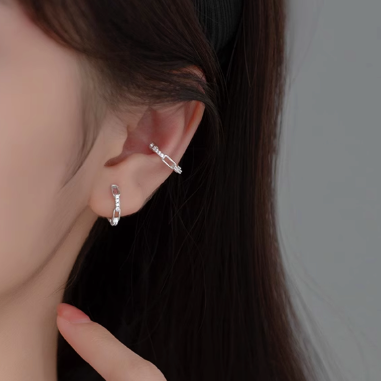 Sterling Silver Hollow Diamond Ear Cuffs(1 Pair)