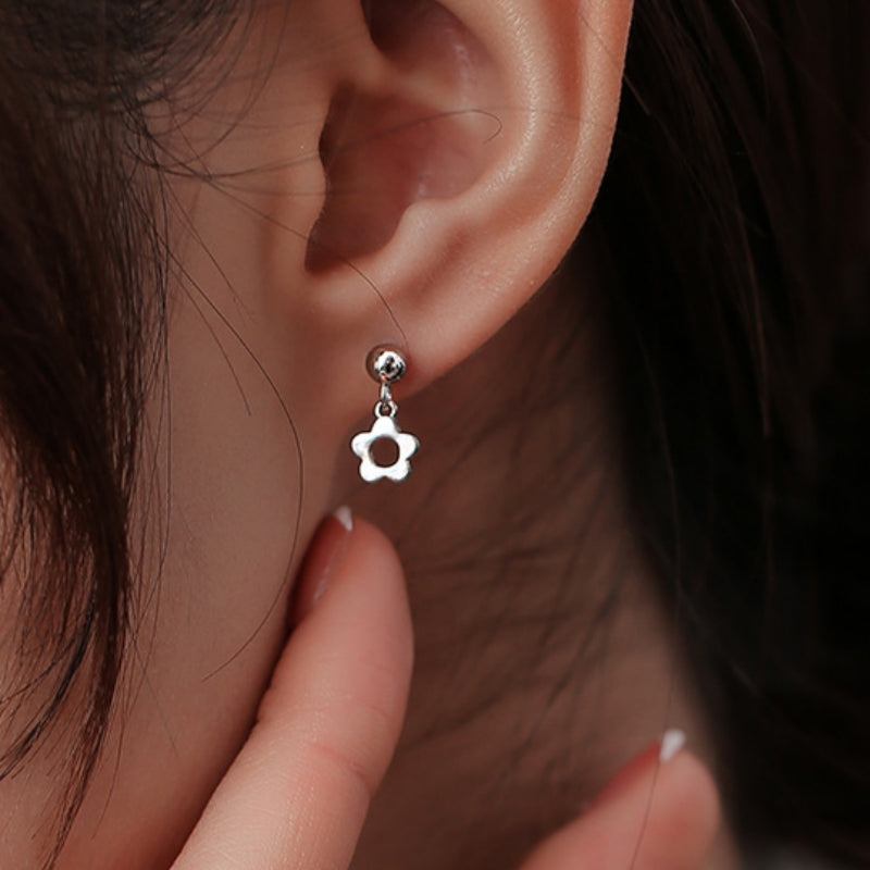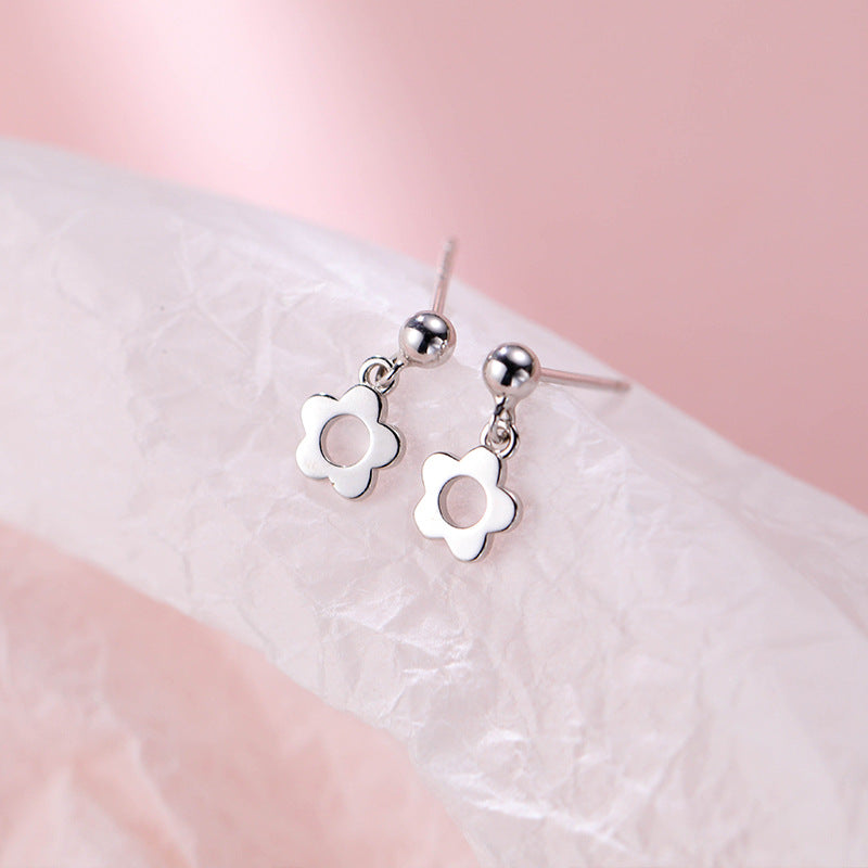 Sterling Silver Hollow Flower Pearl Earrings