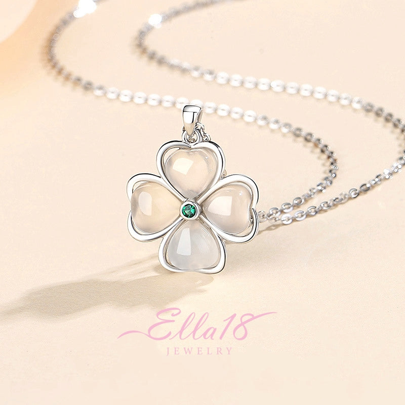 Sterling Silver Hollow Love Four-Leaf Clover Necklaces