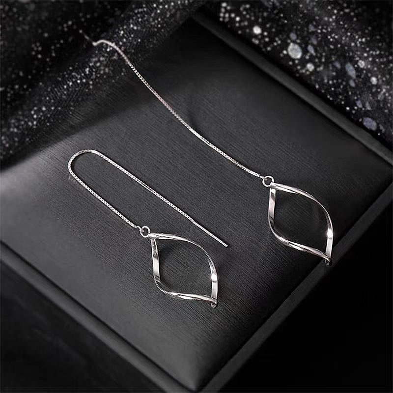 Sterling Silver Hollow Wavy Leaf Threader Earrings